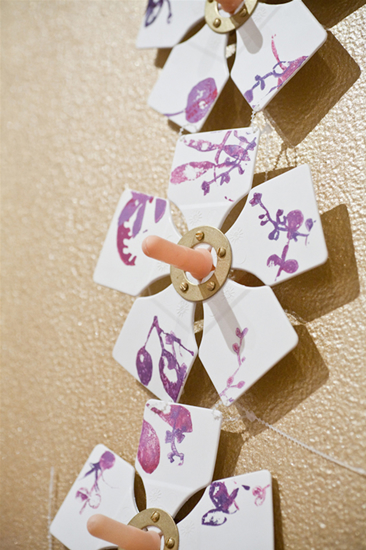 plastic, oil based printing ink, rubber, brass hardware; 2800 x 2800 x 80mm; Source – a contemporary feminine aesthetic; Hastings City Art Gallery; 2010; Photograph: Brian Culy