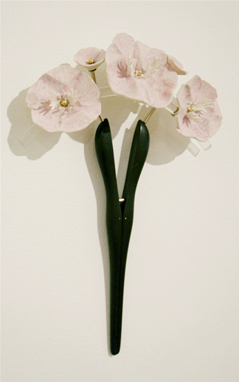 glove stretchers, ceramic, glazes, perspex, brass, metal hardware; Putiputi – the Flower in Contemporary New Zealand Art; Hastings City Art Gallery; 2010 Artist Statement - Click here to view